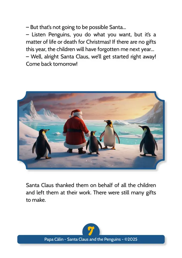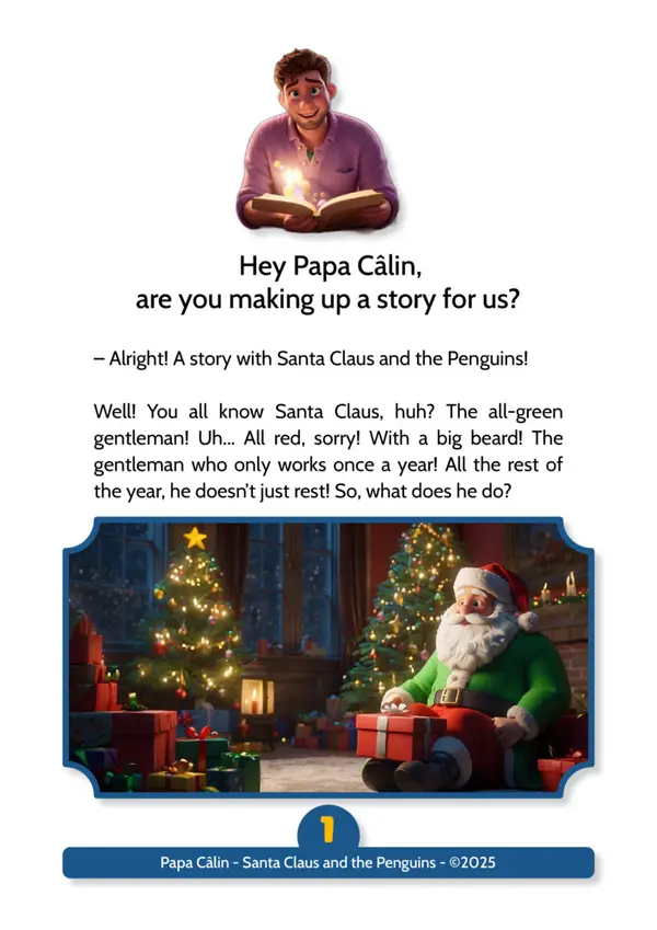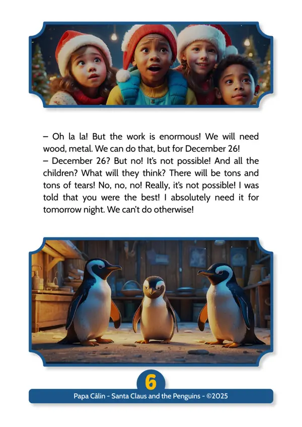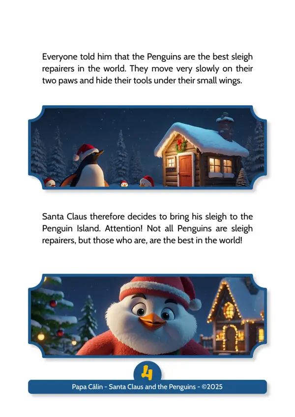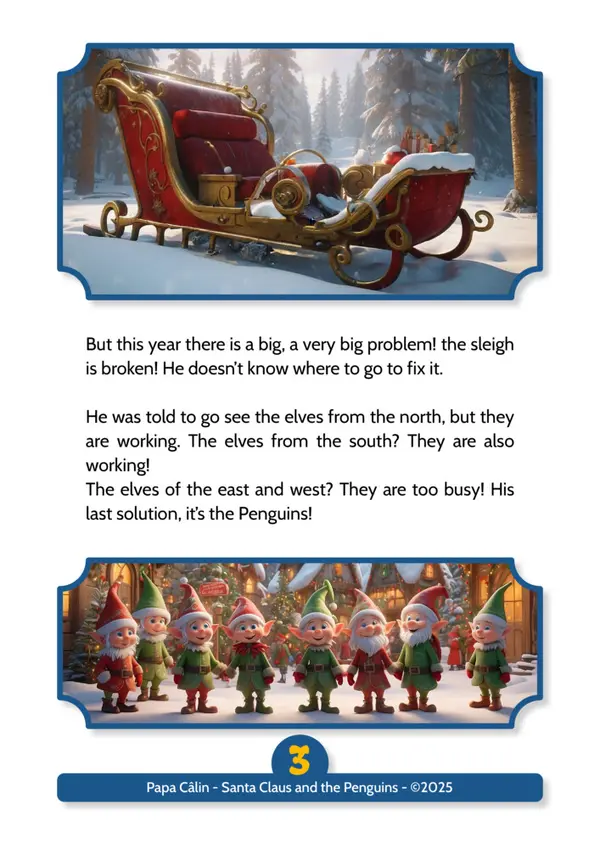 A story by Papa Câlin with Santa Claus and the Penguins, where we discover that they can and must save Christmas.