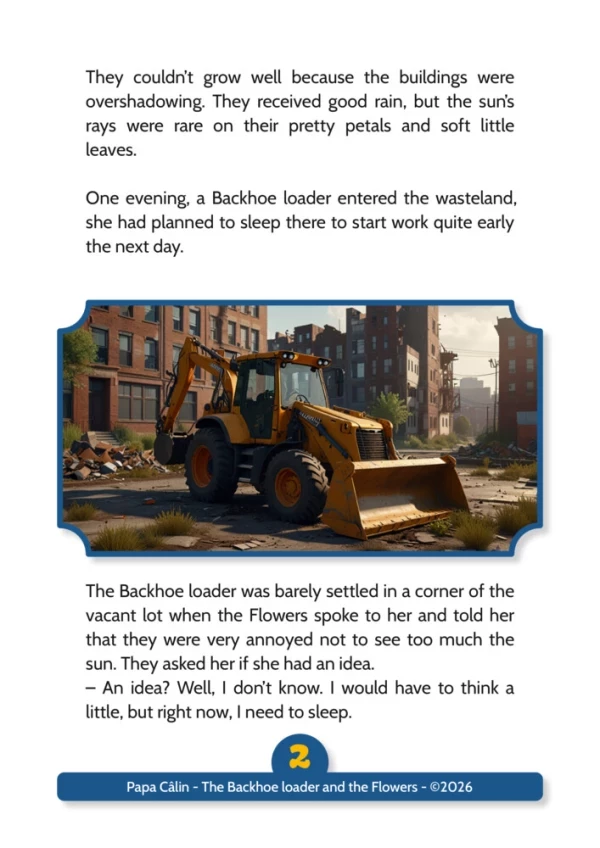 A story of Papa Câlin with the Backhoe loader and the Flowers, where we discover that new encounters can lead to beautiful friendships.