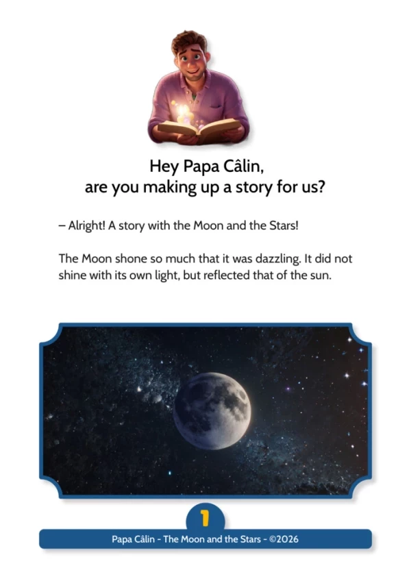 A story of Papa Câlin with the Moon and the Stars, where one discovers that it is better to check one’s information before making a judgment.